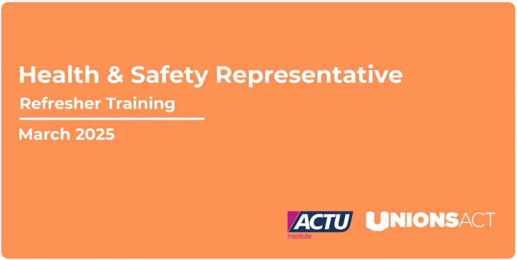 UnionsACT is hosting a one-day refresher course for Health & Safety Representatives in the ACT.